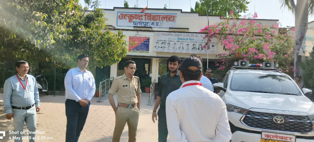 छतरपुर। रविवार को कलेक्टर पार्थ जैसवाल और एसपी अगम जैन ने नीट (यू.जी.) 2025 परीक्षा के  लिए बनाए गए केंद्र शासकीय उत्कृष्ट विद्यालय क्रमांक 1 का निरीक्षण किया। कलेक्टर श्री जैसवाल ने केंद्र पर पेयजल की व्यवस्था, अभिभावकों के बैठने की व्यवस्था, क्लासरूम निरीक्षण, पेपर की सुरक्षा हेतु पुलिस एस्कॉर्ट, बच्चों की फ्रिस्किंग का निरीक्षण किया। साथ ही हर केंद्र पर आब्जर्वर की उपस्थिति की जानकारी ली।