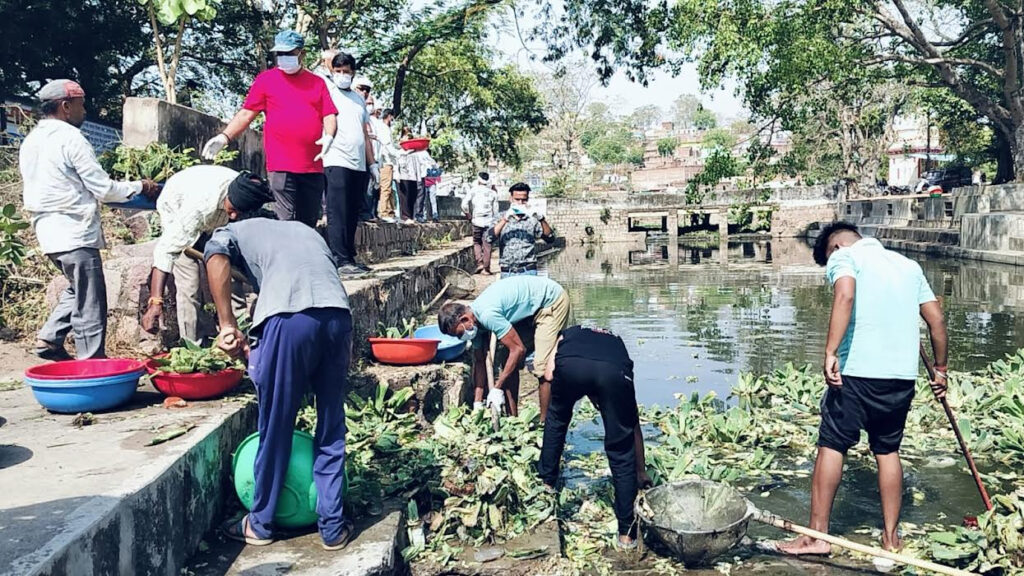 छतरपुर। कलेक्टर पार्थ जैसवाल के निर्देशन में जिले जल गंगा संवर्धन अभियान अंतर्गत जल स्रोतों के जीर्णाेद्धार और साफ सफाई के लिए कार्य किए जा रहे है। इसी क्रम में नगरपालिका अध्यक्ष छतरपुर ज्योति चौरसिया एवं सीएमओ माधुरी शर्मा के नेतृत्व में बुधवार को सिंघाड़ी नदी पर घाटों की सफाई एवं नदी से जलकुंभी निकालने के लिए श्रमदान कार्यक्रम का आयोजन किया गया। सामूहिक रूप से किए गए श्रमदान से नदी की सफाई के लिए राष्ट्रीय चेतना विकास मंच एवं परमार्थ संस्था की जल सहेलियों को विशेष रूप से आमंत्रित किया गया था।