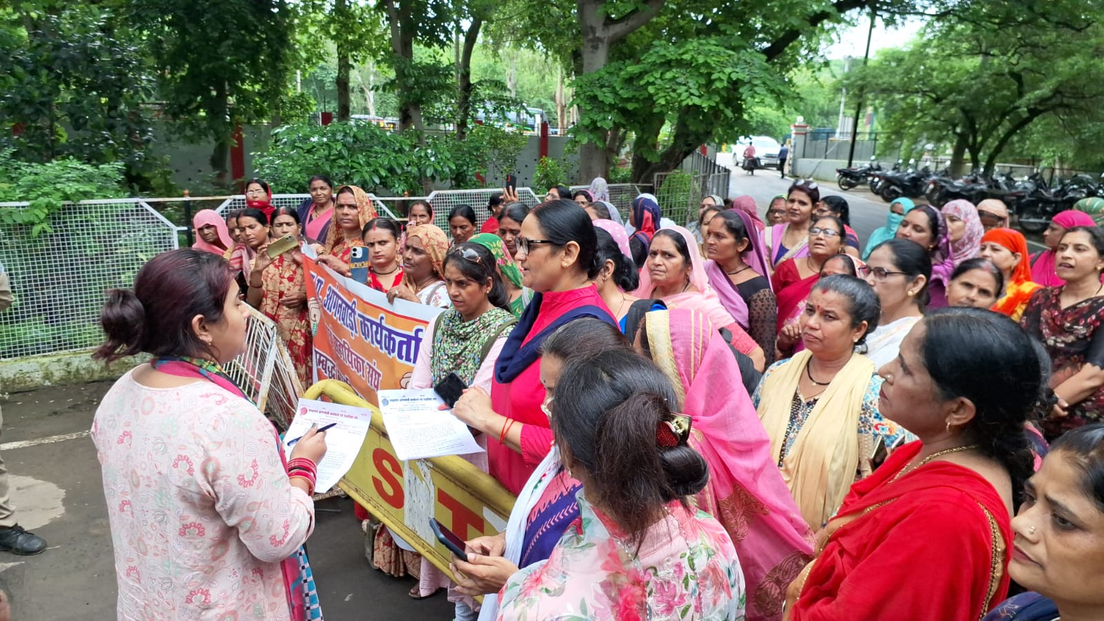 आंगनबाड़ी कार्यकर्ता एवं सहायिका संघ की प्रदेश मंत्री संध्या त्रिपाठी एवं जिलाध्यक्ष नीतू राजा ने ज्ञापन में उल्लेख किया गया कि वर्ष 1975 से महिला एवं बाल विकास विभाग में सेवाएं दे रही आंगनबाड़ी कार्यकर्ता और सहायिका बहनों का कार्यभार दिन-प्रतिदिन बढ़ता जा रहा है। बच्चों को पोषण, महिलाओं को स्वास्थ्य शिक्षा, और बालकों को अनौपचारिक शिक्षा उपलब्ध कराने जैसे मूल कार्यों के साथ-साथ उन्हें अन्य विभागीय कार्यों में भी लगाया जा रहा है। नई तकनीकों और ऐप के उपयोग से कार्य की गुणवत्ता पर विपरीत प्रभाव पड़ रहा है।
