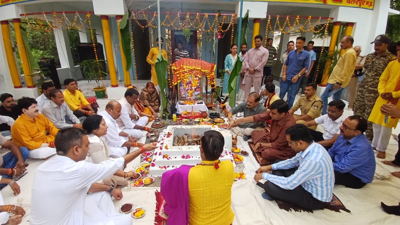 छतरपुर। विजयादशमीं के अवसर पर पुलिस लाइन स्थित राम-जानकी मंदिर में शस्त्र पूजन का भव्य कार्यक्रम आयोजित किया गया। वैदिक आचार्यों ने विधि-विधान से शस्त्रों का पूजन कराया, जिसमें जिले के गणमान्य जनप्रतिनिधि, अधिकारी और पुलिसकर्मी शामिल हुए। कार्यक्रम में केंद्रीय सामाजिक न्याय एवं अधिकारिता मंत्री डॉ. वीरेंद्र कुमार और राज्यमंत्री दिलीप अहिरवार शामिल होने पहुचे। शस्त्र पूजन के पश्चात महात्मा गांधी एवं लाल बहादुर शास्त्री की जयंती के अवसर पर उपस्थितजनों ने उनके छायाचित्र पर माल्यार्पण कर नमन किया।