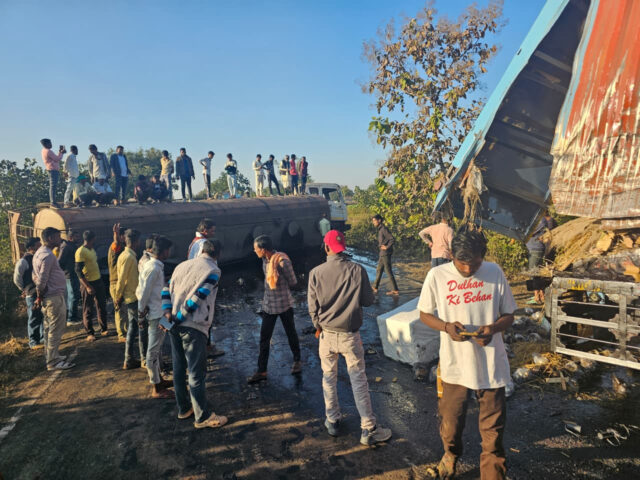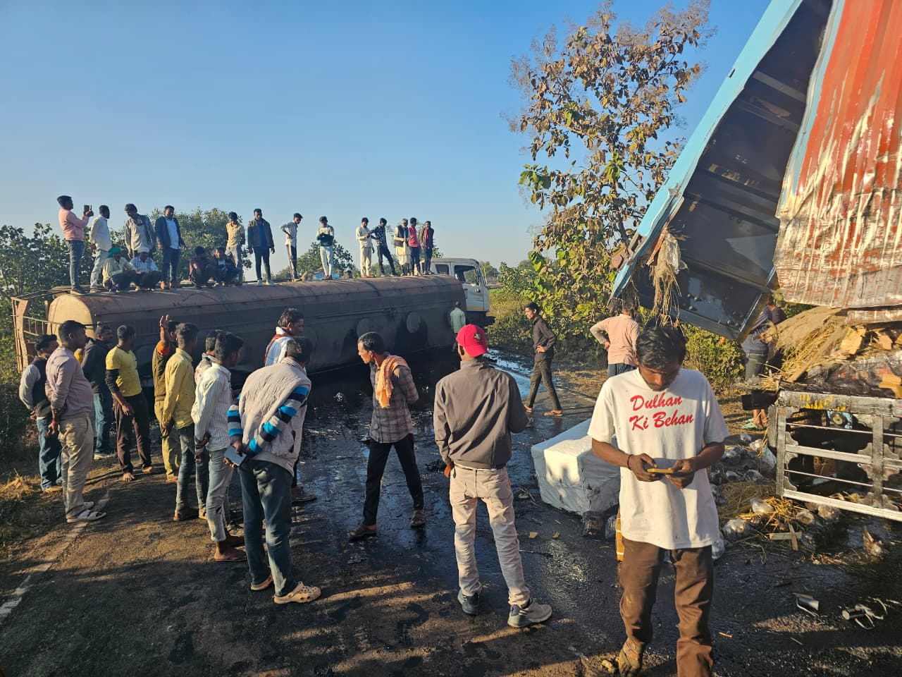 बकस्वाहा-छतरपुर मार्ग पर कंटेनर और ट्रक की भिड़ंत, स्टेट हाईवे तीन घंटे से बंद
