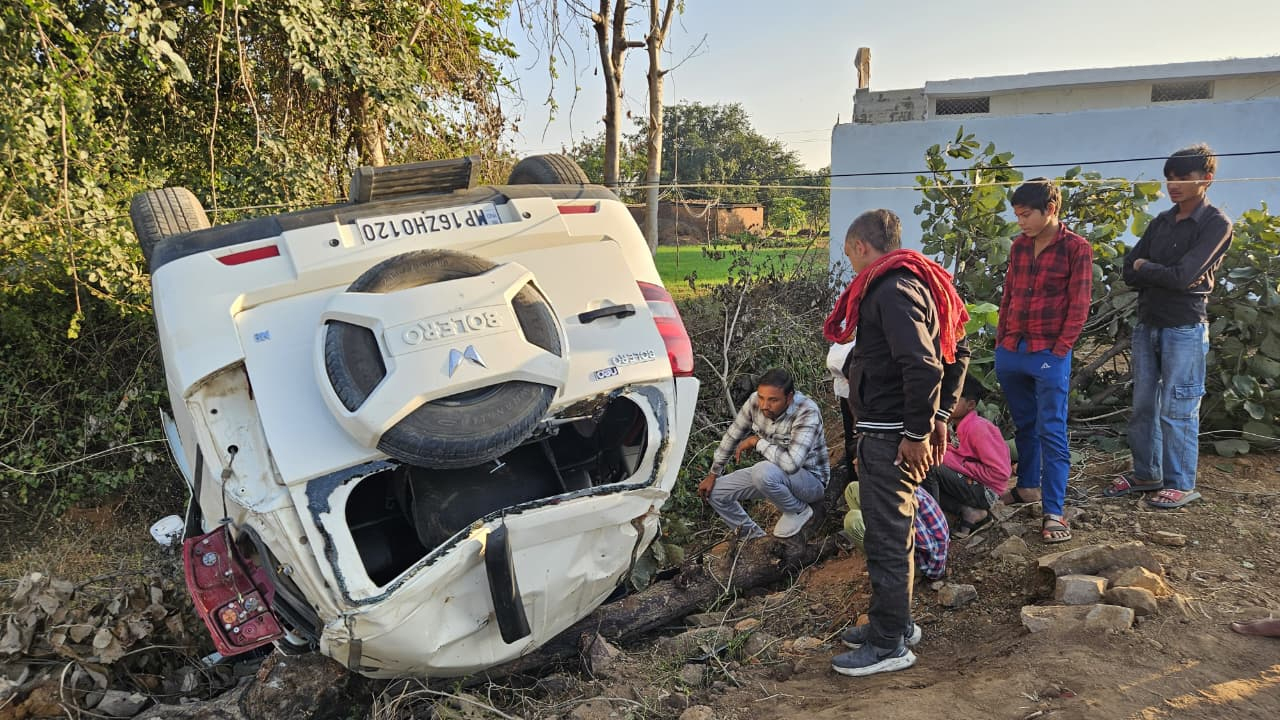 तेज रफ्तार कार अनियंत्रित होकर खाई में पलटी, पांच लोग बाल-बाल बचे
