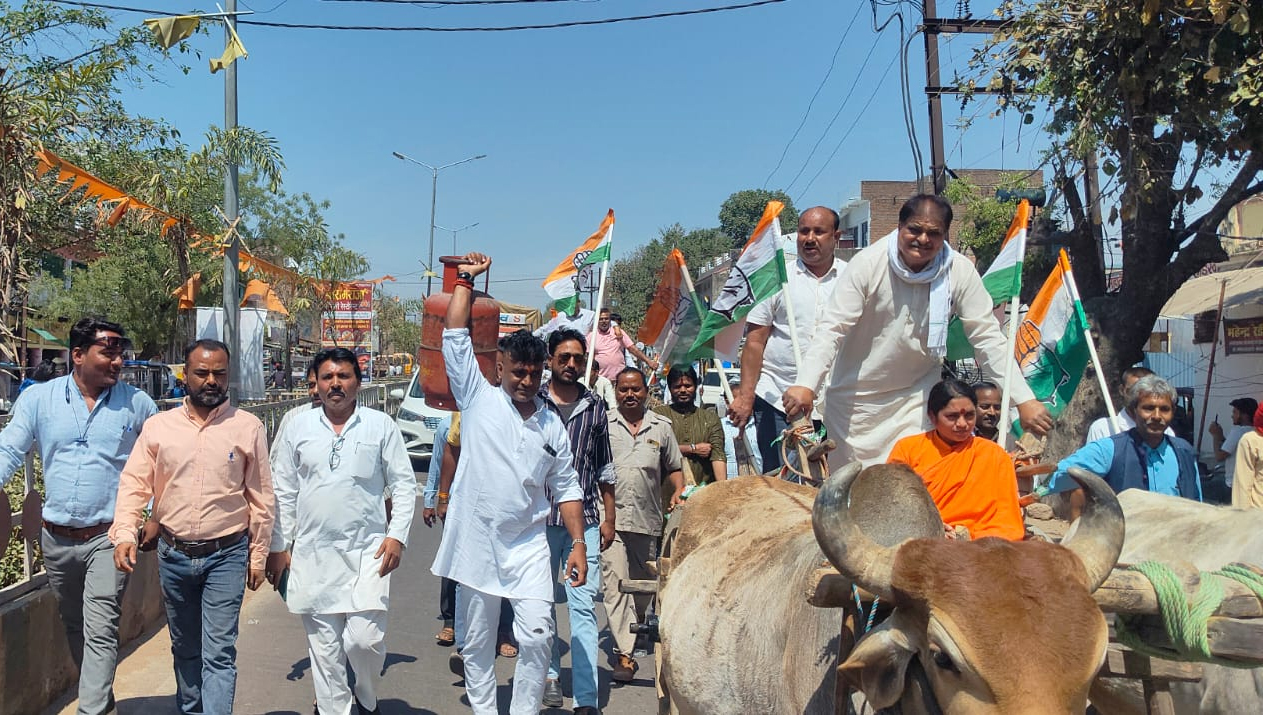 बड़ामलहरा में गैस सिलेंडरों की भारी वृद्धि के खिलाफ कांग्रेस का प्रदर्शन