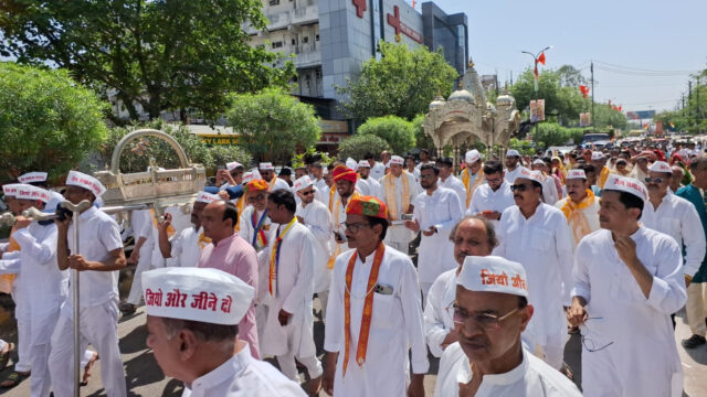 छतरपुर। महावीर जयंती के पावन अवसर पर जैन समाज ने बड़े उत्साह के साथ भव्य शोभायात्रा निकाली। शोभायात्रा कोतवाली के समीप स्थित जैन मंदिर से शुरू हुई। यात्रा छत्रसाल चौराहे से होते हुए मेला ग्राउंड स्थित जैन मंदिर पहुंची, जहां प्रवचन कार्यक्रम आयोजित किया गया। प्रवचन के बाद शोभायात्रा पुन: शुरू हुई और जवाहर रोड बस स्टैंड, चौक बाजार होते हुए वापस कोतवाली के समीप स्थित जैन मंदिर में जाकर संपन्न हुई।रास्ते भर जगह-जगह स्थानीय लोगों और विभिन्न संगठनों ने शोभायात्रा का भव्य स्वागत किया। यात्रा में जैन समाज के महिलाओं, बच्चों और युवाओं की बड़ी संख्या में भागीदारी रही।जैन समाज के जिलाध्यक्ष अरुण कुमार जैन ने बताया कि महावीर जयंती के उपलक्ष में इस वर्ष शोभायात्रा बड़ी ही धूमधाम और उत्साह के साथ निकाली गई। उन्होंने कहा कि भगवान महावीर स्वामी के सिद्धांतों- अहिंसा, सत्य, ब्रह्मचर्य और अपरिग्रह को अपनाने का संदेश इस शोभायात्रा के माध्यम से पूरे शहर में पहुंचा। शोभायात्रा में जैन समाज के अनेक गणमान्य नागरिक और भक्तजन शामिल हुए।
