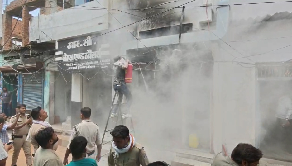 शॉर्ट सर्किट से दुकान में लगी आग, संकरी गली के कारण फायर ब्रिगेड को हुई परेशानी