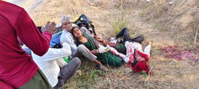 डंपर की टक्कर से बाइक सवार की मौत, पत्नी और पुत्र बाल-बाल बचे